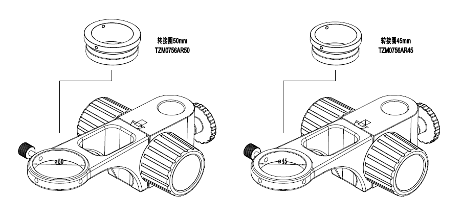2. 如果使用M20x0.705的无限远物镜,需选择M26x0.705转M20x0.705的物镜适配器;