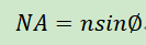 数值孔径(NA)指由聚焦镜头形成的光锥角大小,描述了镜头收集光线的能力(与F/#数类似)。NA表示为以下公式,n是介质中的折射率(通常在空气中n=1),?是入射光锥角度的一半(如图 1所示)。连续变倍数码显微镜的NA可以表示为: